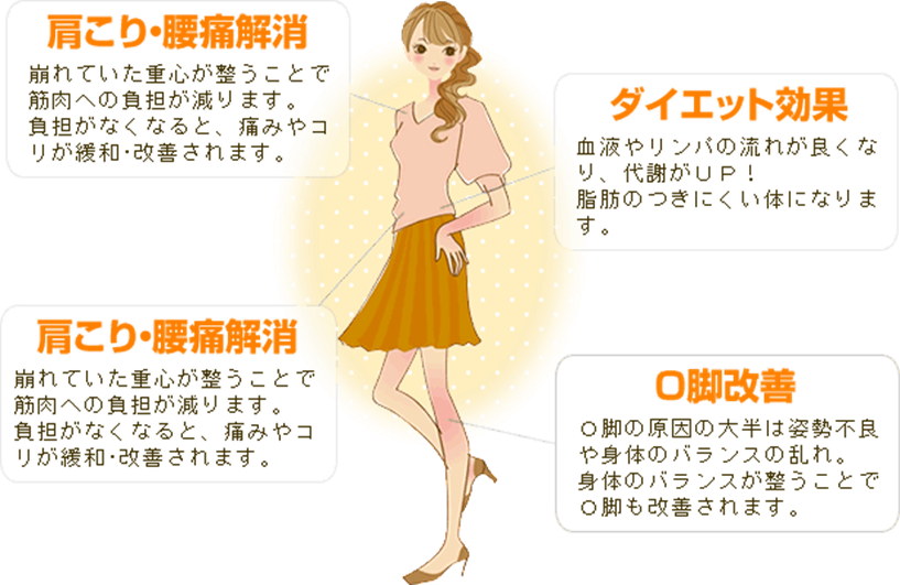 テレビ等で紹介されているような『ギャー!!!』などの痛みはありません。不安な方にはソフトなやり方でアプローチし、骨盤矯正をする事で、身体の歪みを根本的に改善します。