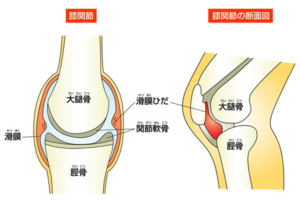 膝の関節の内部には、関節腔という空間があり、その空間は滑膜ヒダという膜でいくつかに仕切られています。
