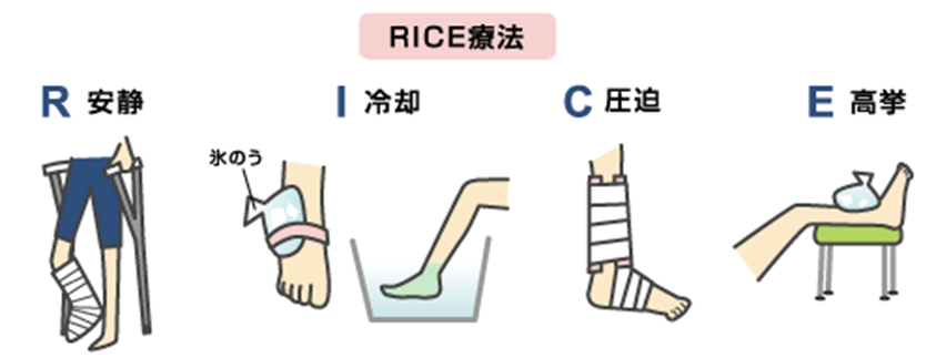E (= ELEVATION):患部を高い位置に保つ